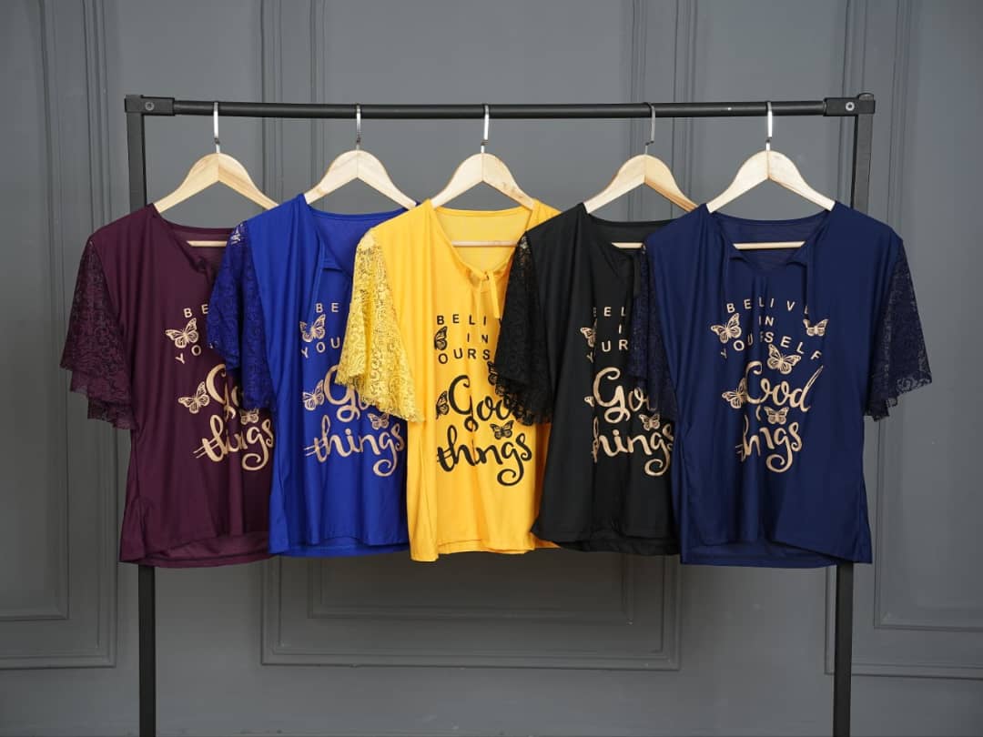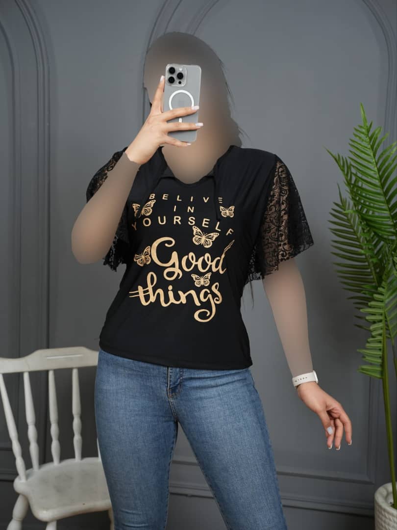 تیشرت سرشانه باز توری جلو ریش ریش 70263