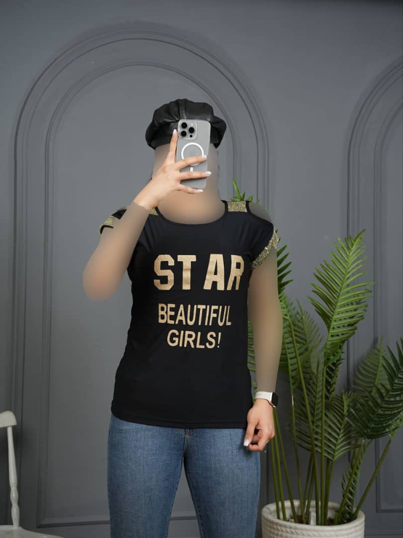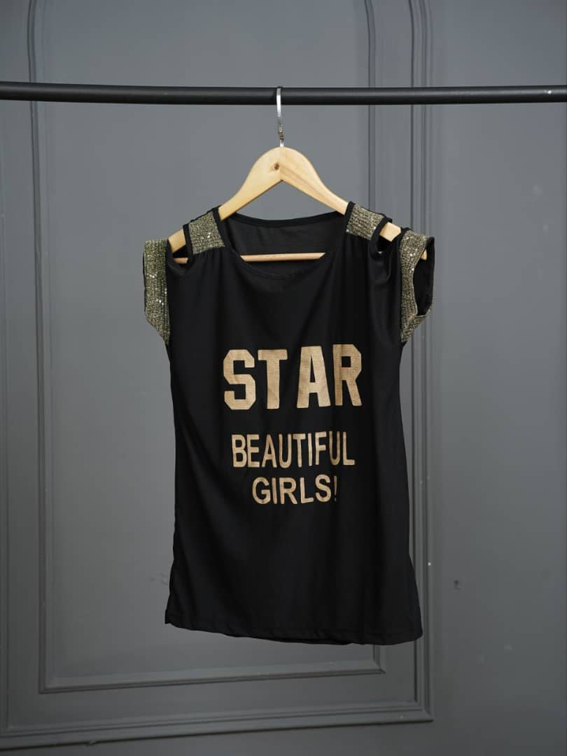 تیشرت طرح STARسرشونه باز پولکی 70129