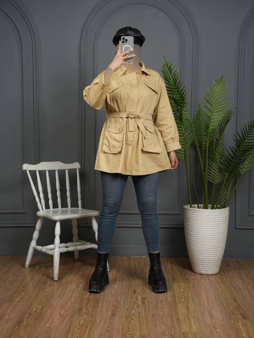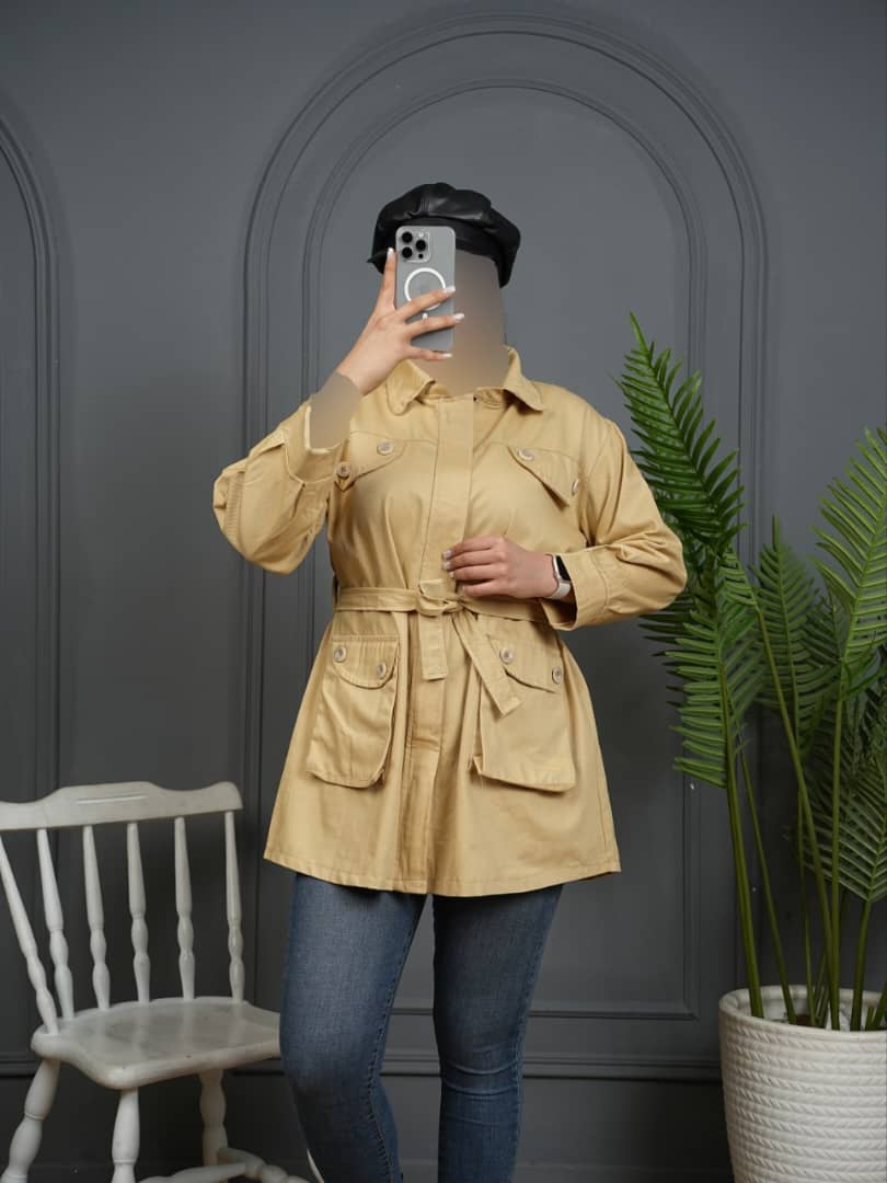 مانتوکتان جلوزیپی کمر بندی دوجیب 4006